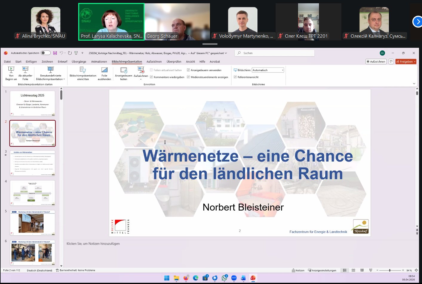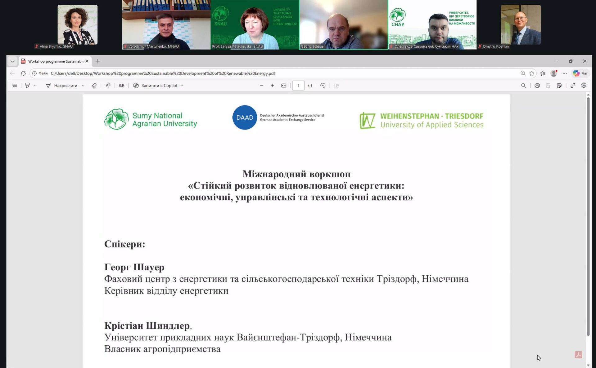 Ключовими спікерами заходу стали Георг Шауер — керівник відділу енергетики Фахового центру з енергетики та сільськогосподарської техніки (Тріздорф, Німеччина), а також Крістіан Шиндлер — представник Університету прикладних наук Вайєнштефан–Тріздорф і власник аграрного підприємства.