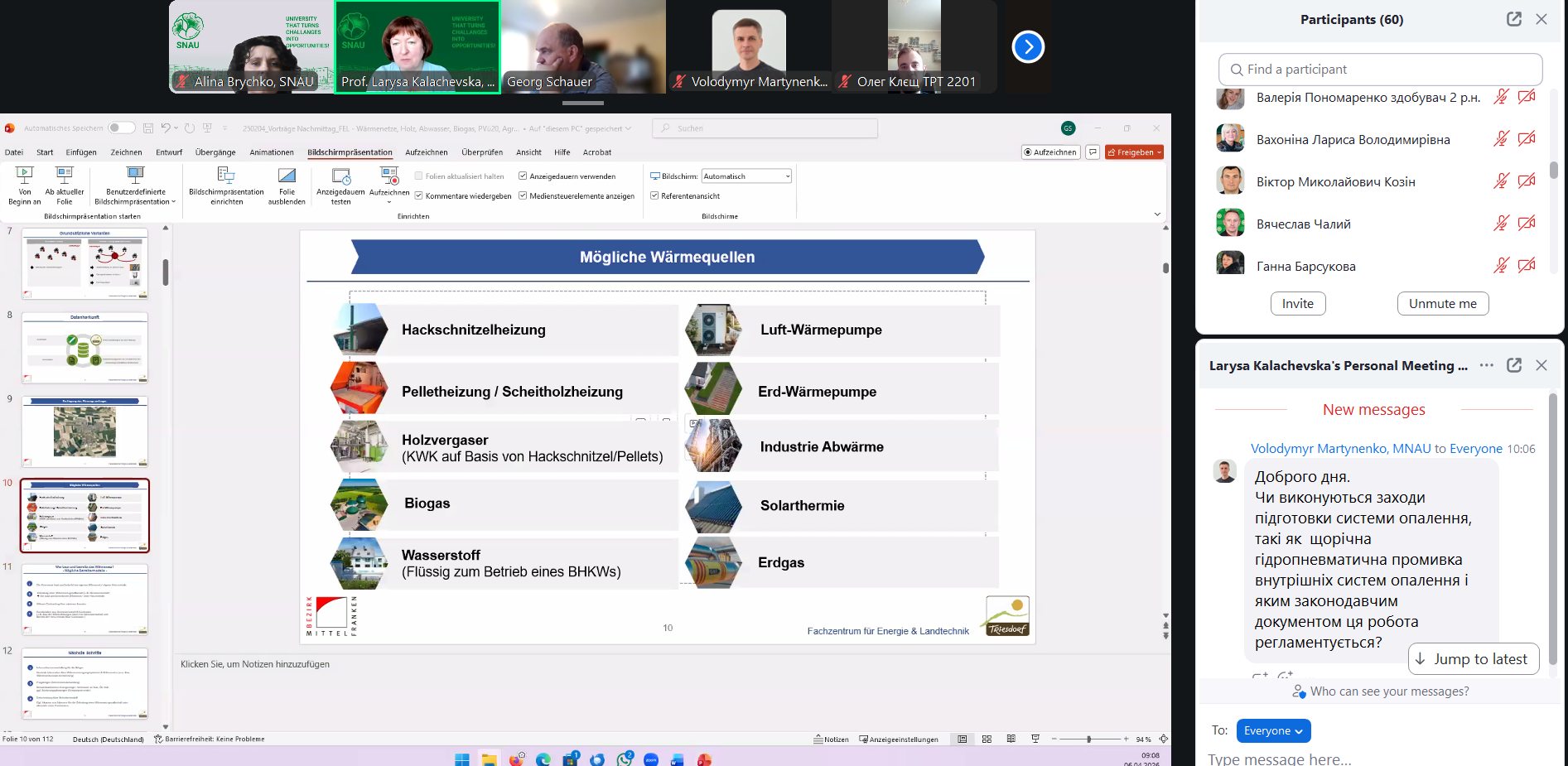 До воркшопу долучилися 102 учасники з провідних аграрних закладів вищої освіти України, зокрема представники СНАУ, що свідчить про високий рівень зацікавленості у питаннях сталого розвитку енергетики.