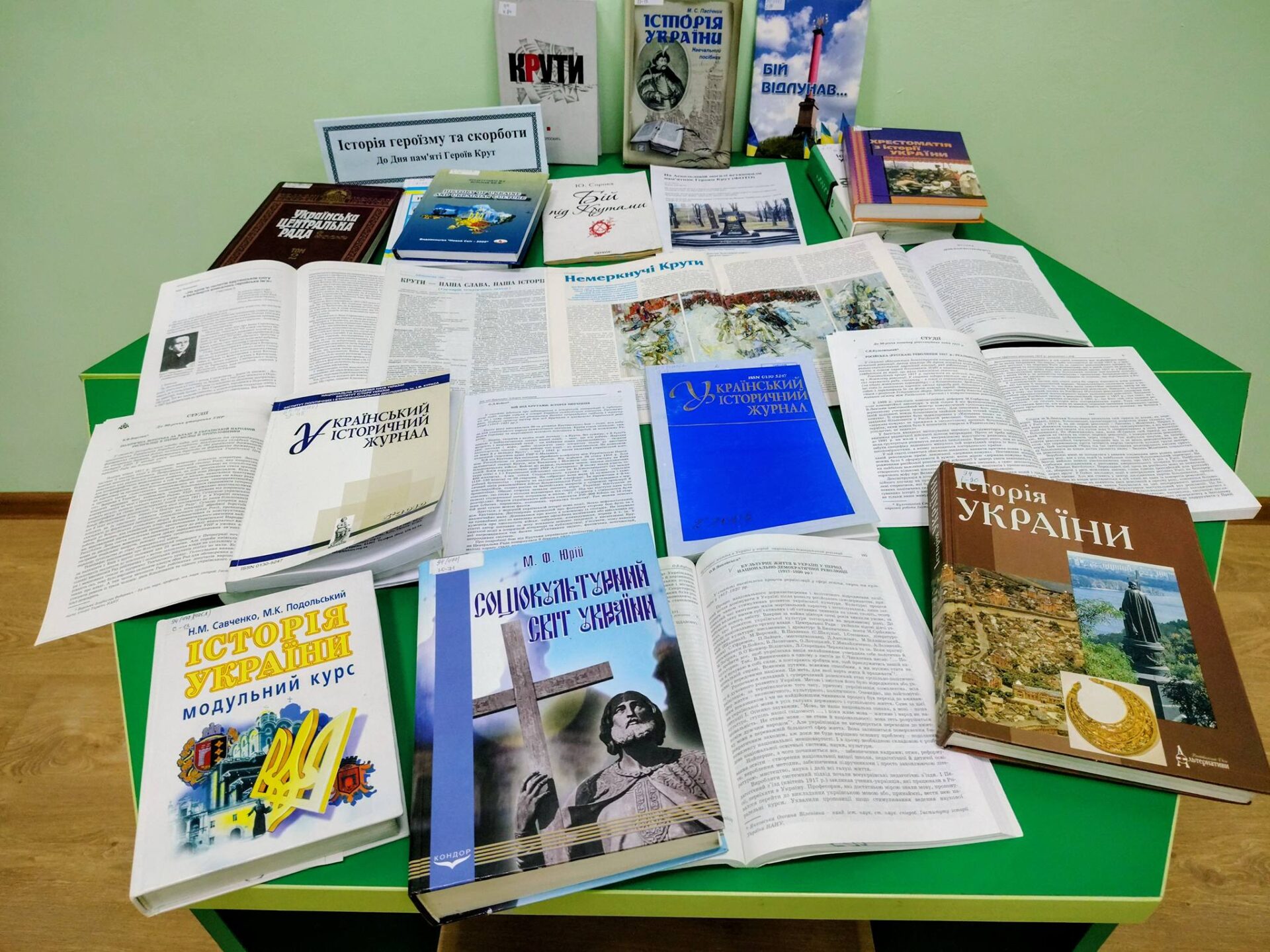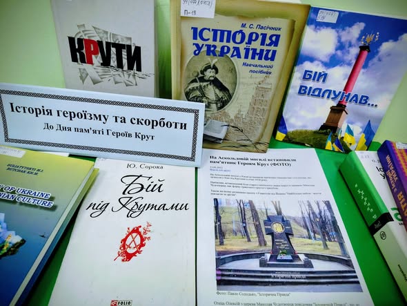 До цієї події у бібліотеці розгорнуто книжкову виставку «Історія героїзму та скорботи». Запрошуємо до абонементу навчальних видань (каб. 11, корп. ф-ту ЕІМ) більш детально ознайомитись з трагедією Крут.