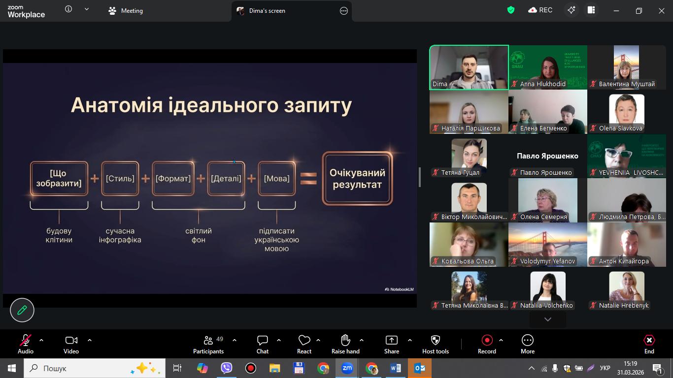 У межах навчання учасники опрацювали широкий спектр питань: використання освітніх платформ та цифрового освітнього середовища, створення навчального контенту й візуалізації, інтеграцію інструментів штучного інтелекту в освітній процес, роботу з науковими джерелами та питання академічної доброчесності, а також застосування хмарних сервісів у діяльності викладача.